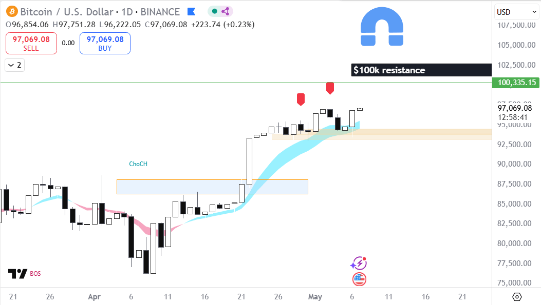 Price Action: now ~$97K. +11.2% in 10 days.