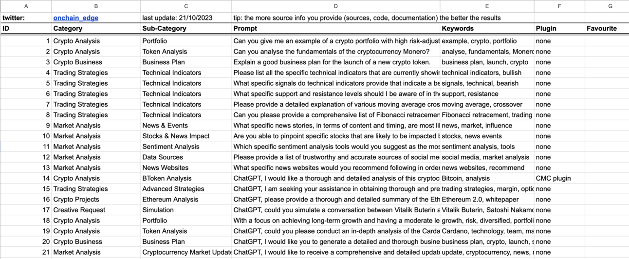 In the spreadsheet below, you will find 70 ChatGPT crypto prompts.