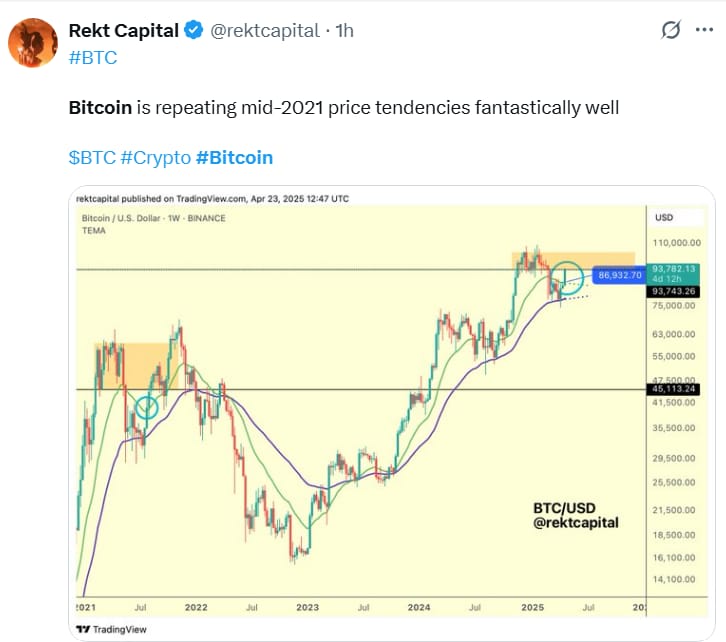 Rekt Capital points to 2021-style mid-cycle breakout symmetry