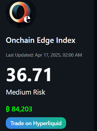 Onchain Edge Index: 36.7 (up from 34.23 last week)
