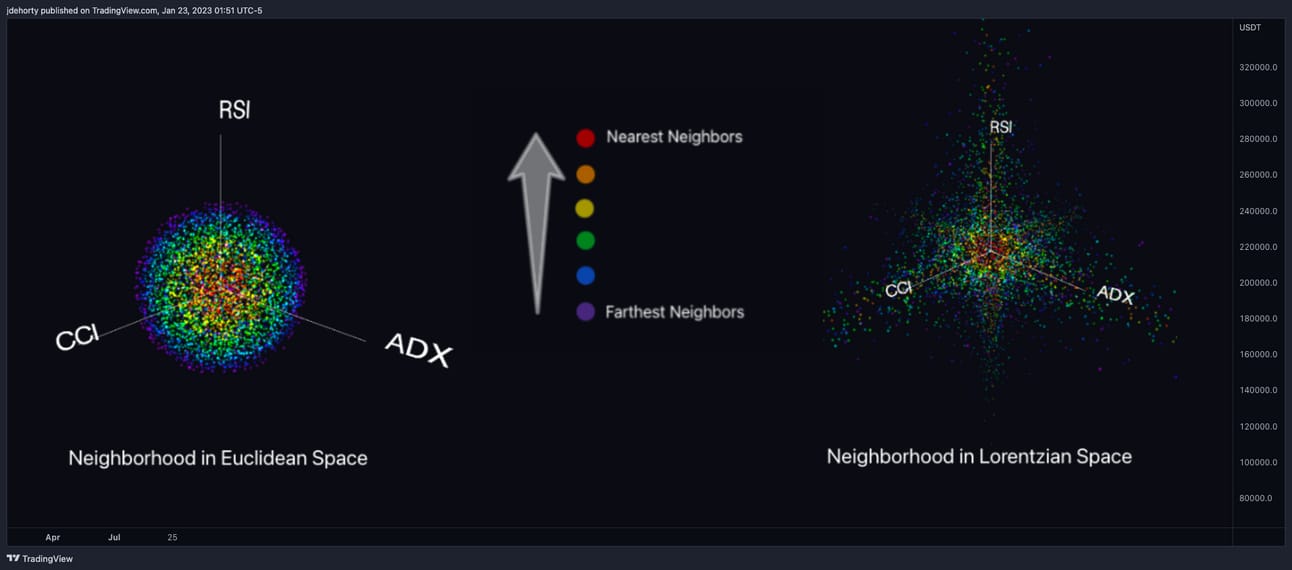 In trading, Lorentzian distance is better than the more common Euclidean distance.