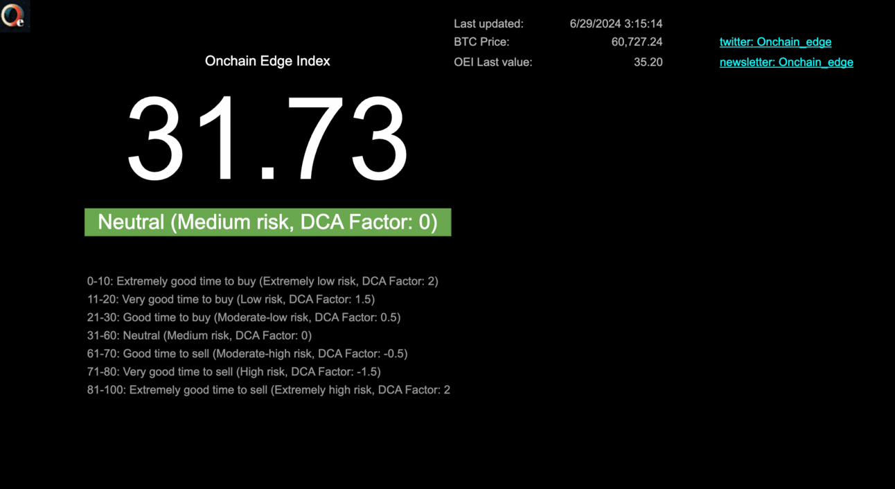 BTC Onchain Edge Index (current value: 37 Medium Risk)