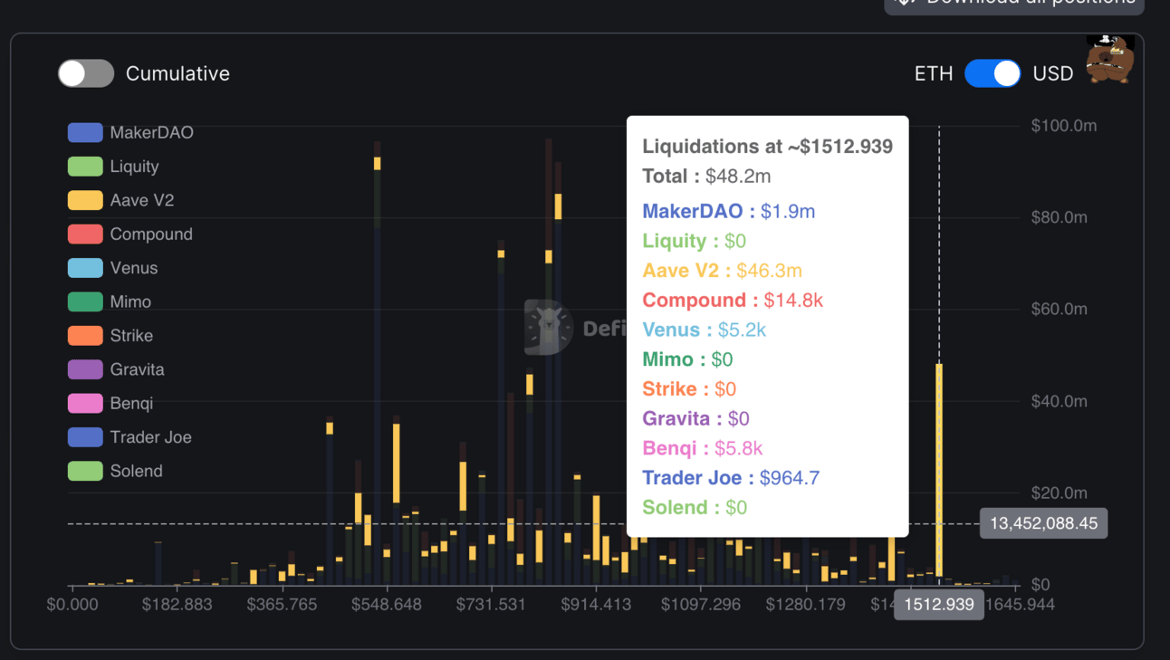 The next big onchain liquidations for ETH are at around $1512.