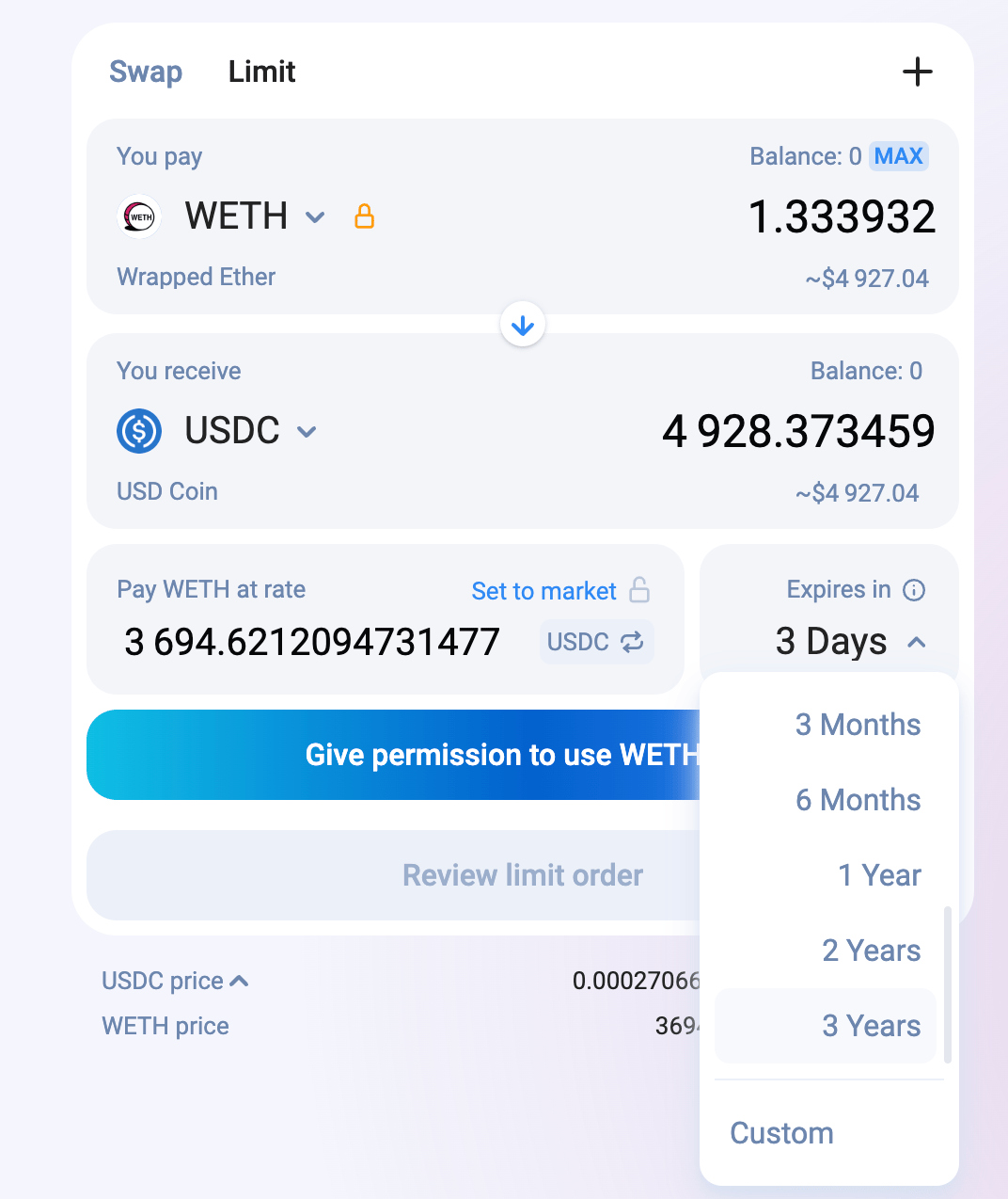 and you can set onchain limit orders at different price levels onchain for up to 3 years.