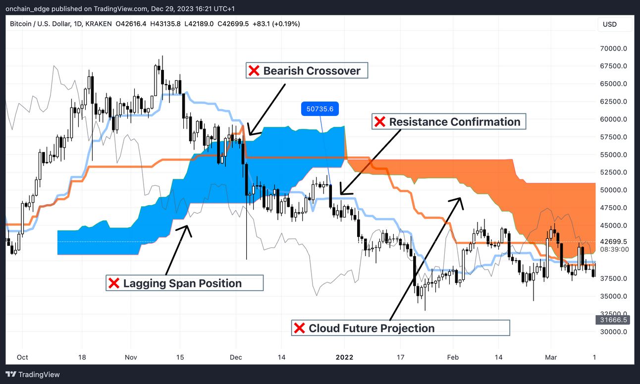 Lagging Span Position: The Chikou Span should be below the price action for additional confirmation of a bearish trend.