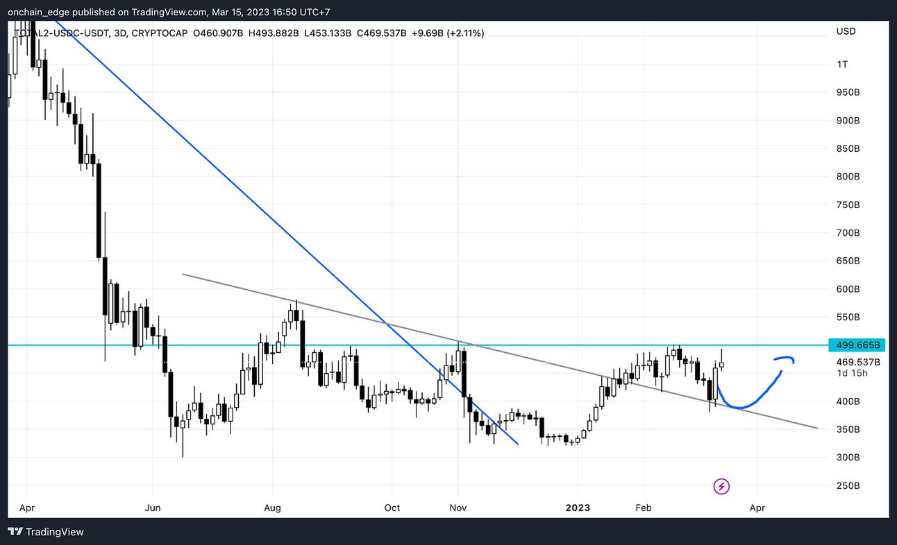 However, for the rally to sustain, the altcoin market must surpass the resistance level of $500B.