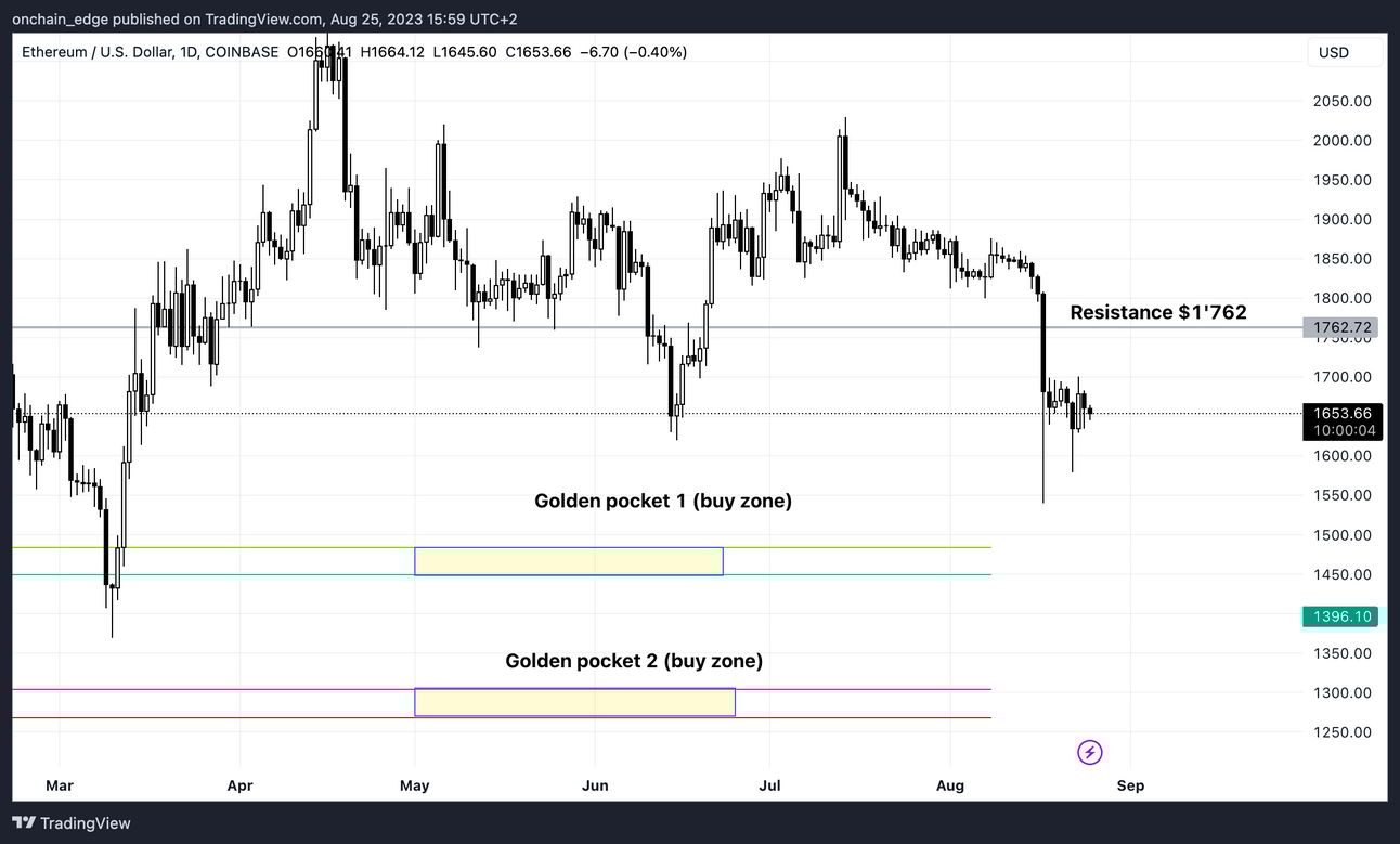 ETH is at $1653 and is slowly moving towards the golden pocket buy zone. An ideal place to start buying some more ETH to hold long-term.