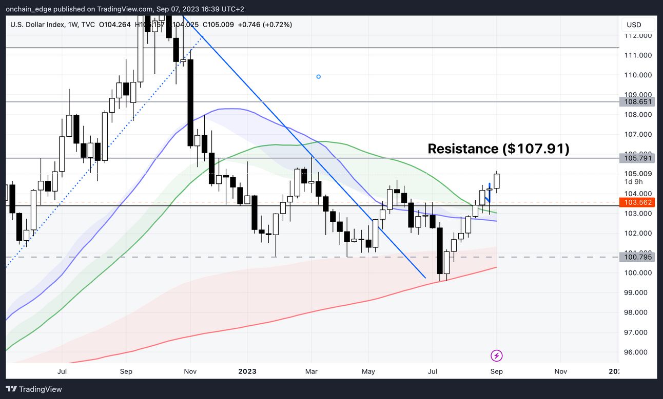 US Dollar Index: Approaching a pivotal resistance with implications for crypto.