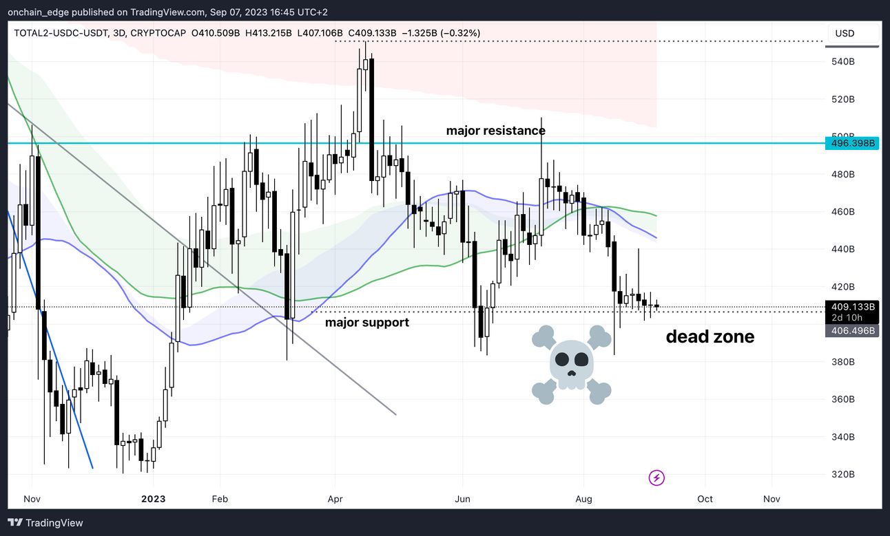 Altcoin Market: The altcoin market is showing signs of distress. A drop below $409bn would enter a concerning dead zone. Personally, several altcoins in my portfolio have been bleeding seriously.
