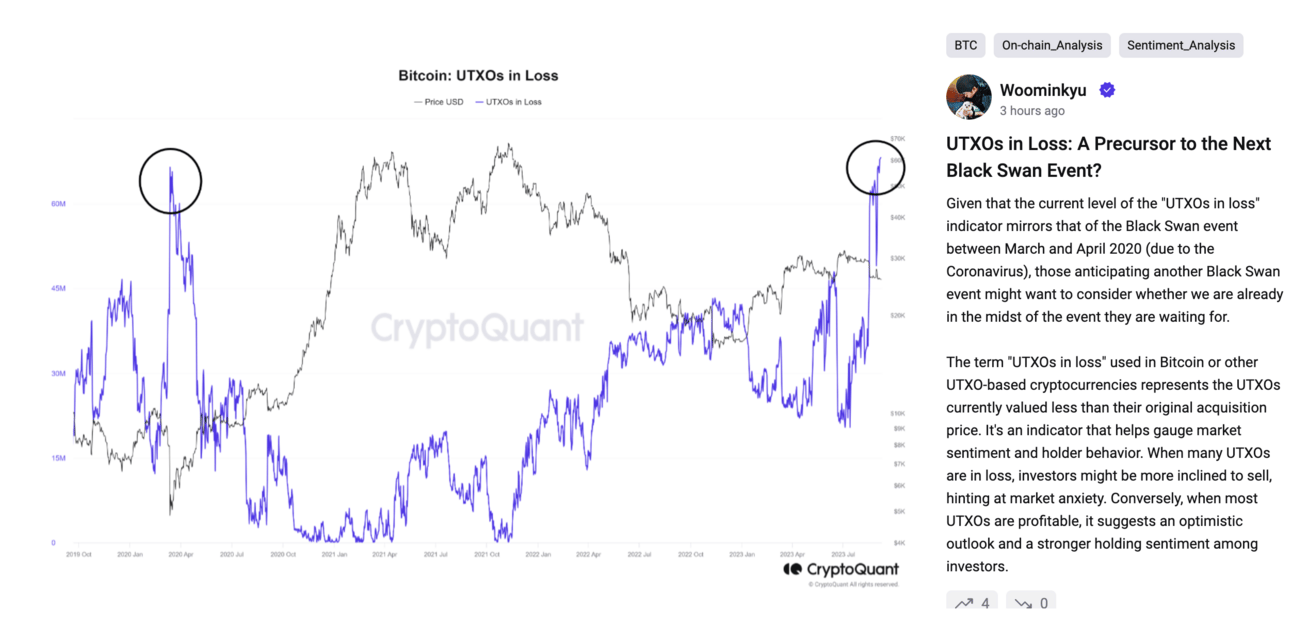 UTXOs in Loss - A Warning Sign? Drawing parallels between today's Bitcoin indicators and the 2020 slump, there's speculation about an impending significant market drop.