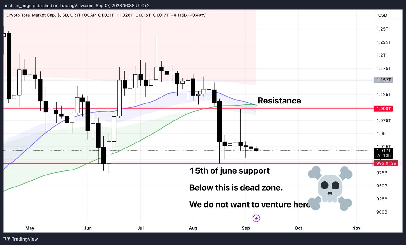 Global Crypto Market Cap: Nearing the June 15th support; potential concerns for hodlers.
