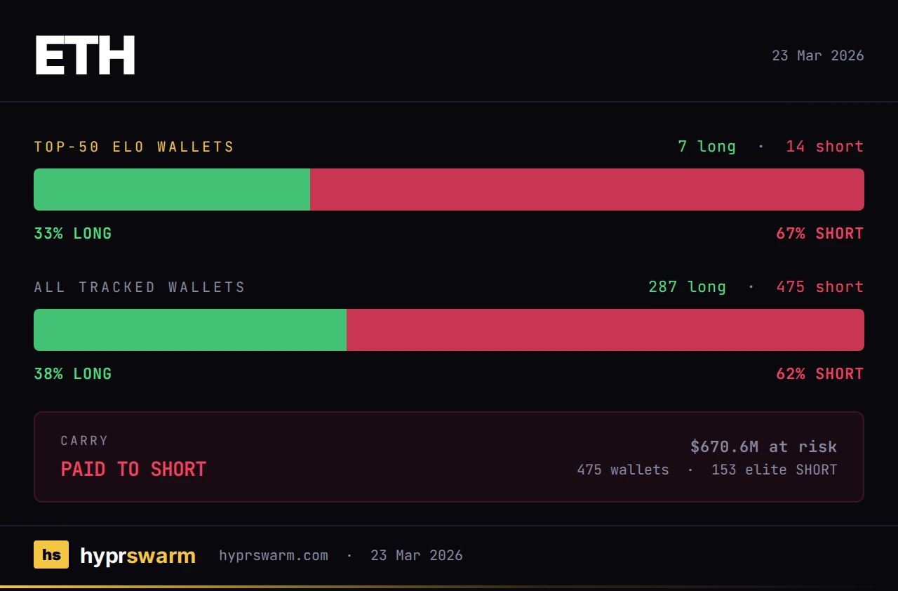 If you are short or waiting: ETH had 105 elite longs at the open. It has 155 elite shorts now. $676 million is positioned short on ETH alone and earning a fee every 8 hours to sit there. The smart money moved fast and in one direction.