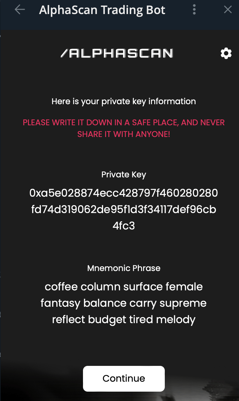 A new wallet will be generated; you must save the private key. Don’t share the private key with anyone. It's not like I’m doing right now!